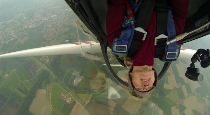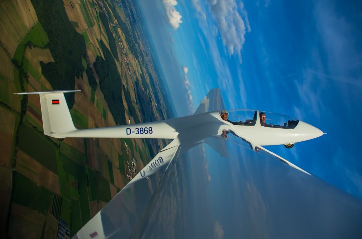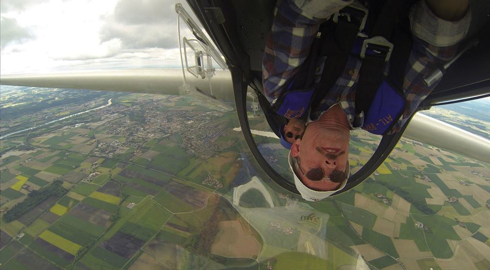 Schnell wussten wir es. Nach einem gründlichen Briefing ging es quasi nahtlos mit Trudeleinweisungen und Rückenflug los. Während man das Trudeln ja noch von seiner normalen Segelflugausbildung kennt, war der Rückenflug dann doch schon eine ganz neue Erfahrung. Das Mantra „Drücken, drücken, drücken“ verfolgte uns von da ab ständig. Manch Teilnehmer habe sogar davon geträumt, wurde kolportiert. Doch noch etwas wurde uns beim ersten Rückenflug schnell klar, nämlich, dass es mit dem herkömmlichen Anschnallen nicht getan war. Auch dies mussten wir neu erlernen, um nicht vom Sitz abzuheben. Die nächste Neuerung: das Horizontbild, das sich im stationären Rückenflug doch stark verändert, sollte uns nun in Fleisch und Blut übergehen und mit ihm die (neue) Orientierung. Diese haben übrigens manche Teilnehmer bis kurz vor Kursende nicht zurück gewonnen – es ist wie eine andere Welt: „Wo ist der Flugplatz, wo ist der Flugplatz, such ihn!“
