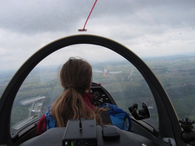 Am nächsten Tag sollten die Gruppe Jung (ASK21) mit Gruppe Alt (DG500) die Flieger tauschen. Soweit der Plan. Es hat allerdings niemand damit gerechnet, dass ein Flieger auch zu groß sein kann. Ich passte nicht in die DG. Also durfte ich dann weiter ASK21 mit den Alten fliegen. Was mir sehr viel Spaß gemacht hat! Langsam aber sicher flogen wir die ersten Figuren. Das Vokabular im Cockpit wurde auch abwechslungsreicher. Nachdem wir im Rückenflug vor allem von hinten nur „Drücken Drücken Drücken“ zu höre bekamen, kamen jetzt schon ganz andere Sachen: „Nicht so viel oben im Looping nachlassen!“ Oder „Auf die Fahrt im Abschwung achten, nicht über 120 mit dem Looping anfangen. Oder „Ausheben, Pause, Querruder rechts, nicht zurücknehmen!“ bei der Rolle. Theoretisch war das ja alles klar, nur bei der praktischen Ausführung haperte es halt noch.