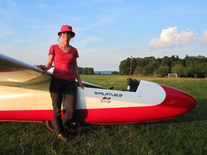 Endlich durfte die Pilatus B4 des Förderverein Segelkunstflug Bayern hervor geholt und nach einer detaillierten Einweisung an den Start geschoben werden. Da die B4 komplett aus Aluminium gefertigt ist, verfügt sie über ein großartiges spezielles Kunstflugfeature. Jede Figur wird von der B4 ähnlich wie bei einem „Knackfrosch“ mit einem „Plong“ kommentiert. Profis können anhand des „Plongs“ erkennen, wieviel g gerade gezogen wurden. Einmal an die Agilität des Flugzeuges gewöhnt, unterschrieben alle Piloten prompt den Aufnahmeantrag des Fördervereins Segelkunstflug, um die Dame weiterhin ausführen zu dürfen. Fluchtversuche mit der B4 beim Thermikflug wurden allerdings schon im Ansatz vereitelt.