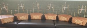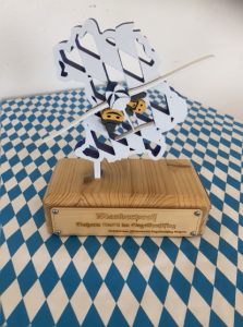 Anstatt uns 0-8-15 Pokale zu kaufen und Euch diese als Staubfänger nach guten Darbietungen zu übergeben, haben wir uns entschieden, für Euch besondere Trophäen (handgemachte Einzelstücke) zu bauen.